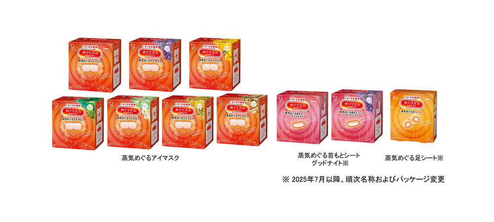花王は2025年8月25日、ヘルスケアの主力ブランド「めぐりズム」において、さらなるグローバルブランド化を目指しリブランディングを実施すると発表した。その一環として、好評を博している「めぐりズム 蒸気でホットアイマスク」を改良した新商品「めぐりズム 蒸気めぐるアイマスク」を8月30日に発売した。今回のリブランディングでは「蒸気めぐるシリーズ」として、アイマスクの他、首もとシートと足シートのパッケージも刷新。〝ぐるぐる好循環〟をブランドスローガンに掲げ、「めぐりズム」としての価値提案を推進していく。花王は、アジアでの「めぐりズム」の一体運営を加速し、グローバルブランドとしての育成を強化する。
