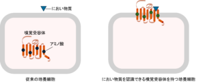 においの感じ方を調べるには、嗅覚受容体がにおい物質を認識したときの反応を確認する必要があります。しかし、ヒトの鼻で直接実験することはできないため、通常は嗅覚受容体を発現させた培養細胞を用いる。嗅覚受容体は、鼻では細胞表面に存在することでにおい物質を認識するが、培養細胞では、表面に安定して存在できず細胞内にとどまってしまうため、におい物質を認識することができない。そのため、これまで反応を確認できたヒトの嗅覚受容体は全体のわずか1割程度にとどまっていた。
