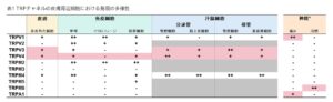 同研究グループでは、表皮角化細胞、血液から単離される免疫細胞(単球、マクロファージ、樹状細胞)、ヒト汗腺の構成細胞(分泌管管腔細胞、分泌管筋上皮細胞、導管管腔細胞、導管基底層細胞)の遺伝子発現を解析し、各細胞でのTRPチャネルの発現パターンを明らかにした。特にこれまで不明であった汗腺の構成細胞の発現パターンを解明した(図2、表1)。汗の生成を司る分泌管の管腔細胞においてTRPV4が、また汗の再吸収を司る導管の管腔細胞においてはTRPV3の発現が高く、これらTRPチャネルが発汗調節に重要であるということは、発汗を考える上では重要な情報となる。