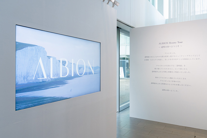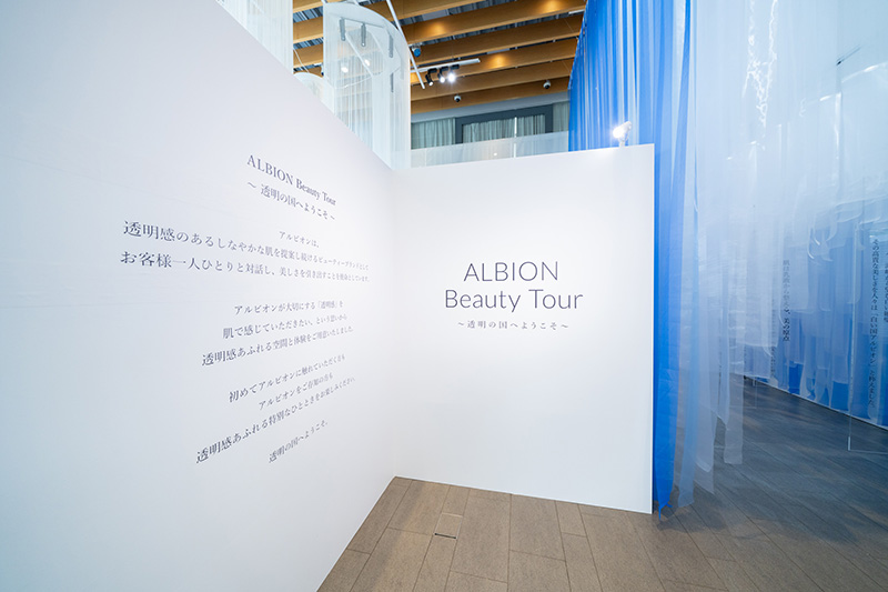 同イベントでは、アルビオンが大切にしてきた「透明感」という価値を体感できるさまざまなコンテンツを配置。先行乳液をはじめとしたアルビオン独自のスキンケア体験を通じ、自身の肌と向き合いながら、透明の国を旅するような特別な時間を提供した。