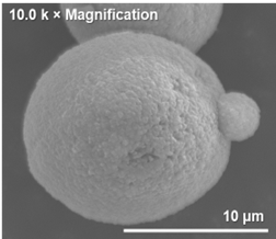 同研究では、真珠貝由来の成分を製造する過程で生じる「脱灰液」に注目した。真珠や真珠貝の貝殻で独特の光沢をもつ部位を真珠層というが、この真珠層からはコンキオリンと呼ばれる保湿成分が得られ、これを加水分解することで化粧品原料へと活用されている。コンキオリンを製造する過程で、さまざまなミネラルや真珠層を形成する成分が含まれた大量の液体が生じる。この液体を脱灰液というが、これまで化粧品原料として十分に活用されてきていなかった素材だ。同社はこの脱灰液から、球状結晶の「真珠パウダー」を新たに開発した(図2)。
