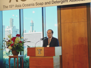 冒頭あいさつに立った長谷部佳宏副会長(花王社長)は、「私たちの業界は今、気候変動、資源循環の必要性、消費者意識の変化など、大きな変化の時にあります。このような状況において、アジア・オセアニア地域は、その力強い成長と高まる重要性により、未来を形作る上で一層大きな役割を果たすことになります。今こそ、私たちが力を合わせ、アイデアと経験を共有し、より持続可能な社会のために新しい価値を創造する時です。この機会を活かし、最新の情報を共有し、アジアとオセアニアの石鹸・洗剤業界の未来について共に考えましょう。本日の会議が、あらゆる地域の人々のより健康的で衛生的な生活、そして私たちの業界の将来の成長を促進する一助となることを願っております」と語った。