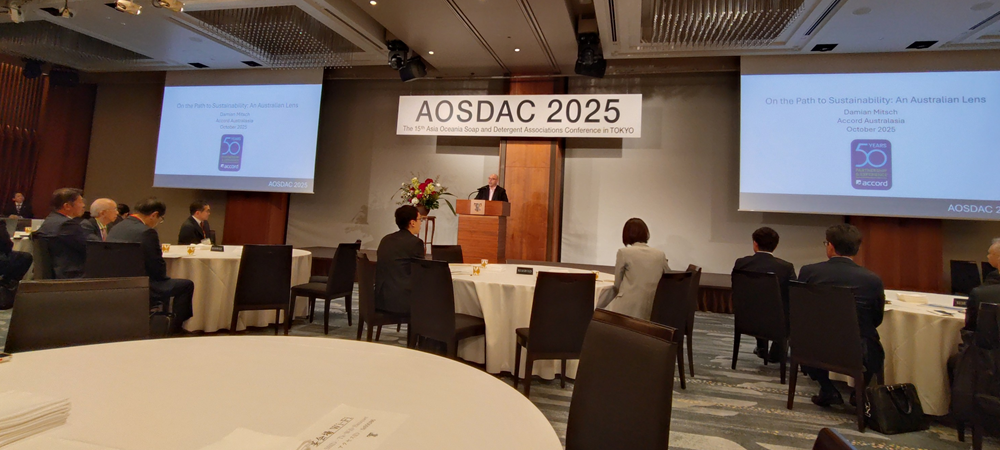日本石鹸洗剤工業会(JSDA)は、2025年10月16日、17日の2日間にわたり東京・千代田区において第15回AOSDAC(アジア・オセアニア石鹸洗剤工業会会議)を主催。JSDAの竹森征之会長(ライオン社長)が「日々の習慣がつくる持続可能な未来:革新と挑戦への第一歩」と題して基調講演を行ったほか、AOSDACメンバーの9カ国・地域(オーストラリア、中国、インド、インドネシア、マレーシア、タイ、フィリピン、台湾、日本)に加え、米国(ACI)、カナダ(CCSPA)、欧州(A.I.S.E.)の各工業会、計12カ国・地域から約160名が参加し、欧米の石鹸洗剤業界の課題や規制について議論した。