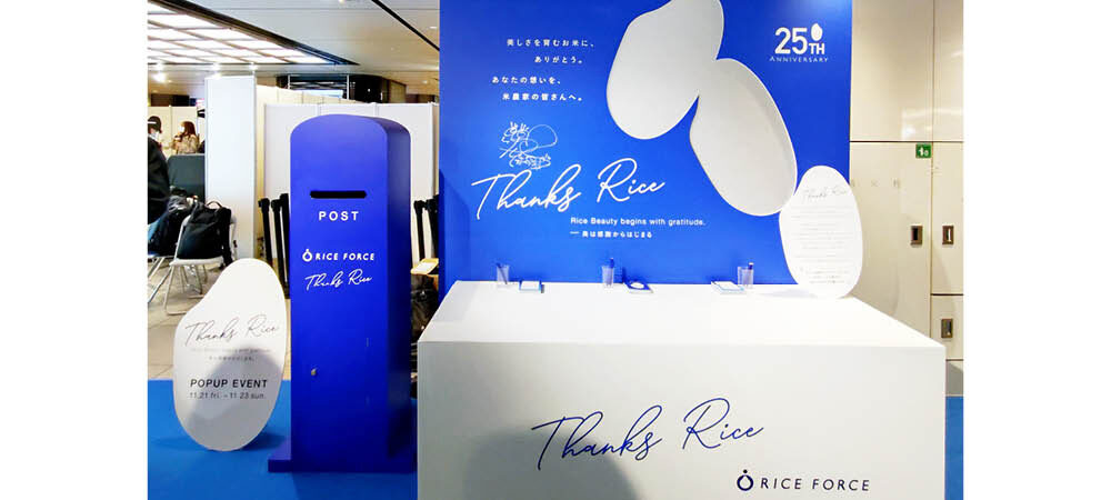 第一三共ヘルスケアダイレクトは、スキンケアブランド「ライスフォース」の25周年を記念し、ポップアップイベント「Thanks Rice」を2025年11月21〜23日の3日間、JR東京駅「スクエアゼロ」にて開催した。