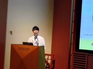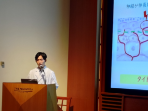 その後、花王スキンケア研究所の藤本達也研究員が低バリア肌の人は日焼けしやすいと感じる傾向にあることや、その課題にアプローチする製品設計にたどり着いたことを示した。赤羽智紀研究員が20年を超えるタイトジャンクションの研究を紹介するとともに、その機能低下が敏感肌における知覚過敏のメカニズムに関連していることを説明。機能低下を改善する成分としてGABOBを見いだしたことを明らかにした。