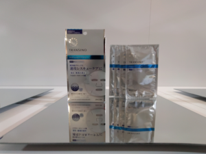 26年2月13日に、7年ぶりに刷新して発売する「トランシーノ薬用ブライトニングフェイシャルマスク」(医薬部外品・20ミリリットル×4枚・2200円)は、しみの根源にアプローチするトラネキサム酸・グリチルリチン酸2Kの「Wの有効成分」配合は骨格として引き継ぎながら、肌印象を暗くする要因に着目した新しい「肌コンディションサポート処方」をプラス。さらに人それぞれの顔かたちへの最大公約数的な密着感を目指しミリ単位でチューニングしたシートのスリット設計に仕上げている。