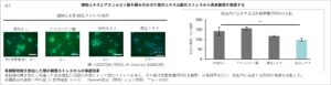 比較研究の結果(表1)をもとに、ヒドロキシラジカル除去作用の高いフラボノイドを多く含む4種の植物果実エキス(レモン・ベルガモット・じゃばら・青みかん)を選定し、その植物エキスとアスコルビン酸を組み合わせた複合エキスが、細胞を過酸化水素(酸化ストレス)負荷から守るか調べた。複合エキスを表皮細胞に加えて酸化ストレスを与えたところ、他の細胞よりもROSのシグナルが低く、酸化ストレスが起きにくいことが分かった(図2)。