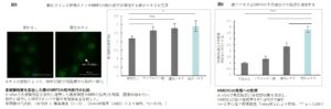 さらに、メカニズム解析から複合エキスによって酸化ストレス防御のスイッチNRF2が核内移行、活性化され、それにより働く抗酸化遺伝子(HMOX1)も増加し、細胞が自ら酸化ストレスに対抗できる状態であることが示された。