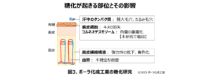 ポーラ化成工業では、長年にわたり皮膚中のタンパク質の糖化を研究してきた(図3)。糖化研究の新たな知見となる同研究の一部は、2025年9月10~13日に開催された第56回欧州皮膚研究学会(European Society of Dermatological Research)で発表された。