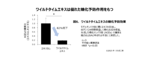 コルネオデスモソームが適切なタイミングで切断されるには、デスモグレイン1の糖化を予防することが重要だと考えた。そこで糖化を予防する植物エキスを探索した結果、ワイルドタイムから抽出されたエキスに高い予防効果を確認した。ワイルドタイムエキスには、糖化を予防する効果が期待できる(図6)。