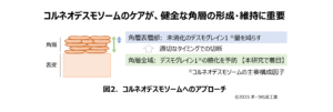 角層細胞同士を接着するコルネオデスモソームは、角層剥離に重要な構造だ。ポーラ化成工業は、コルネオデスモソームケアの重要性に従来から着目してきた。今回新たに明らかにした糖化デスモグレイン1に関する知見は、コルネオデスモソームが適切なタイミングで切断される仕組みを理解する上で重要な手がかりとなる。これら一連の研究は、健全な角層の形成・維持に関わる。デスモグレイン1の糖化を防いで角層剥離を正常化することは、やわらかな角層を育み、肌内部のハリを実感しやすくする、新たなアプローチになると考えられる(図2)。