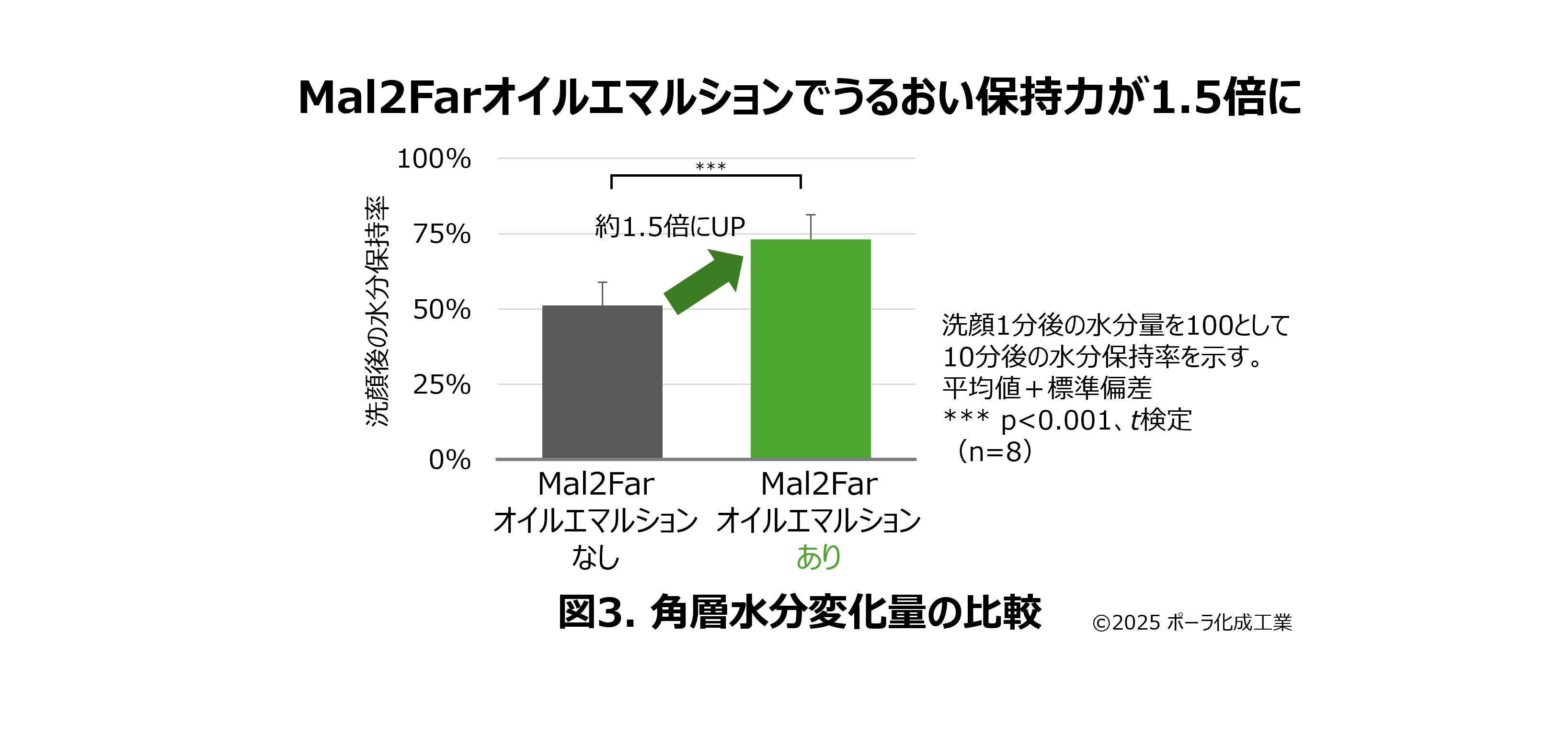 そんな中ポーラ化成工業では、肌表面の角層に吸着する性質を持つ天然由来保水成分「Mal2Far」を洗顔後の肌に残存させ保水力を高める技術を開発してきた。
