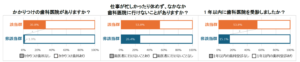 1年以内の歯科受診については、該当群では53.8%が受診なしと回答し、非該当群の15.1%と比べて有意に高い結果となった。交替勤務の該当群で歯科受診率が低かったのは、年齢が比較的若いために自覚症状が乏しいことに加えて、かかりつけ歯科がないなど歯科医院との関係性が薄く、歯科受診の優先順位が低くなっていることが考えられる。