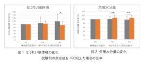 また、ほうれい線以外の肌状態への効果も併せて確認した結果、肌の角層水分量の変化率においても、ほうれい線と同様にヤギ乳エキス配合化粧水使用群で改善効果が確認された(図2)。