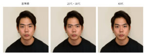 内容:被験者に20~40代の男性の顔画像3枚をランダムに提示し、シミュレーションツールを用いて「目」「瞳」「鼻」「口」「眉」の形や大きさ、位置などを自由に調整することで、「かっこいい印象」と「親しみやすい印象」へ変容するよう指示した。