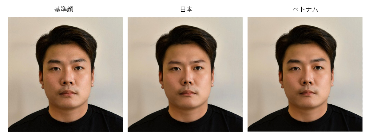 結果:「理想の自己顔」に対して、日本の男性は鼻を大幅に細くし、目と眉を近づけ、眉の色を茶色に変容させた。一方、ベトナムの男性は目を垂れ目にさせる傾向があった。