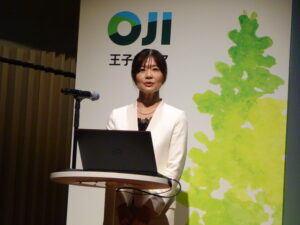 続いて北海道医療大学薬学部の高上馬希重教授が医薬品や化粧品に使われる植物「カンゾウ(甘草)」の有用性や原料植物、日本ではほぼ全量を輸入に依存している現状などについて解説。さらに王子薬用植物研究所八田嘉久取締役・事業本部事業部長が同研究所による国産王子カンゾウの大規模栽培成功とその要因、国産王子カンゾウエキスの機能性について説明した。最後に、王子ネピアマーケティング本部商品企画部の井上加菜氏が、美容液マスクの特長や美容成分などについて語った。
