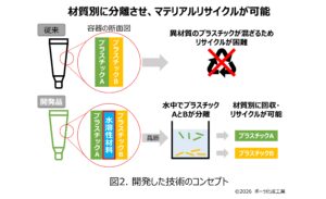 同技術は、リサイクルに課題があるとされていたチューブ容器において実現したが、チューブ容器にとどまらず幅広い活用が期待できる。分離を前提とした容器設計により、プラスチックリサイクルの概念を大きく進化させるマイルストーンとなる可能性を有している。