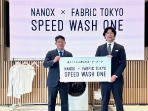 ライオンは2026年2月26日、NANOX×FABRIC TOKYO コラボスーツ リリース発表会を開催し、カスタムオーダーのビジネスウェアを手掛けるFABRIC TOKYO(以下、ファブリックトウキョウ)と協業し、“洗うことから逆算したスーツ”「NANOX×FABRIC TOKYO TOKYO SPEED WASH ONE」(以下、トウキョウ スピード ウォッシュ ワン・全10種・18000円~)を立ち上げた。トウキョウ スピード ウォッシュ ワンは、オリジナル洗濯ネットをセット、衣料用洗剤「NANOX one PRO(ナノックス ワン プロ)」(本体 大・600グラム)をノベルティとして、同日ファブリックトウキョウの公式ECサイトと直営店で発売した。ライオンがアパレル企業と共同開発した商品を展開するのは初めて。