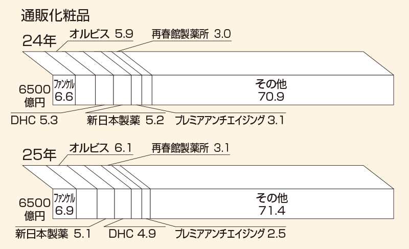 通信販売は、化粧品の主要な販路として確かな地位を築いている。広告やマーケティング、製品構成は独自色が強く、売り場となるメディアもネットを中心に進化を続けている。シェア争いは長年、ファンケル、オルビス、ディーエイチシーの3強が主導してきた。その3社がここ数年で相次いで新体制へ移行し、次の成長に向けた動きが本格化している。とりわけファンケルとディーエイチシーは資本や経営陣を刷新。老舗の変革が市場にどのような影響を及ぼすかが焦点となる。