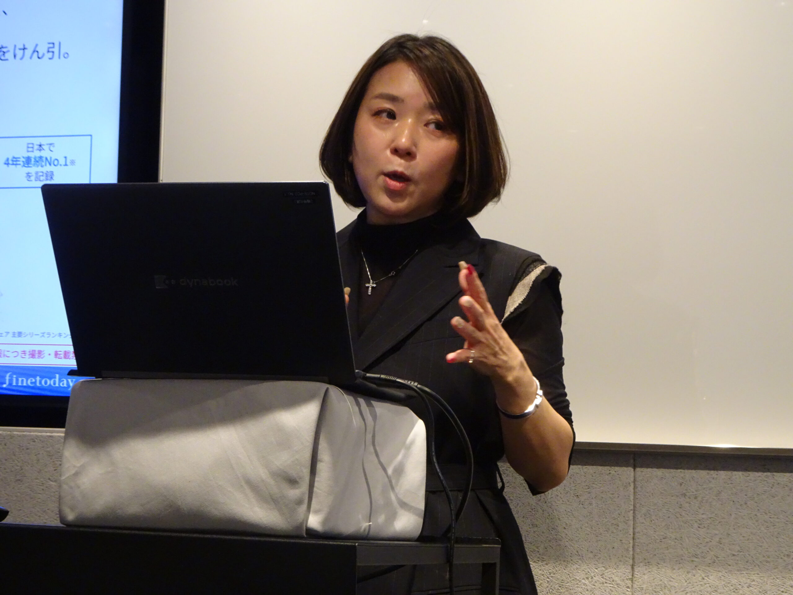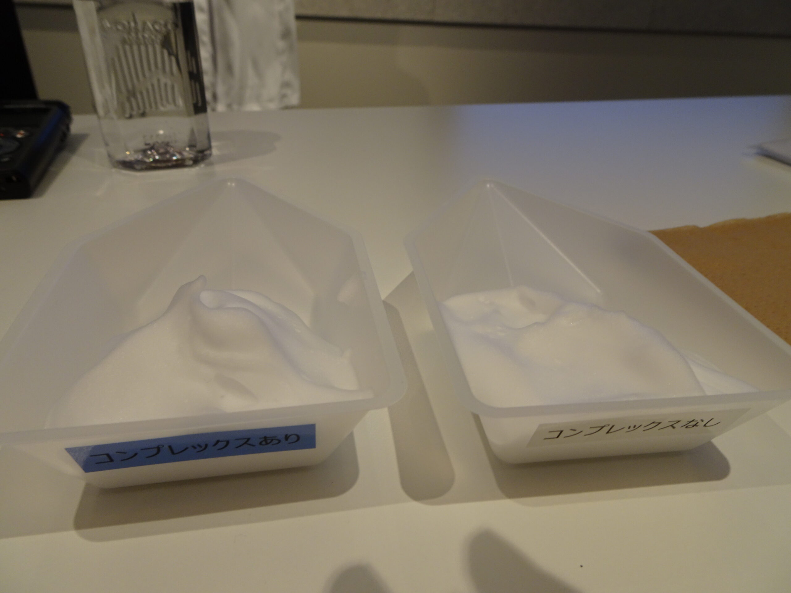 ファイントゥデイR&D本部 ブランド価値開発本部 情報開発グループ 井門美穂グループマネージャーは、「ビューティーコンプレックス」の詳細な技術解説を行った。さらに新旧の泡の感触の違いを指で触って体感できるデモンストレーションを行い、今回搭載した技術を来場者に実感してもらった。