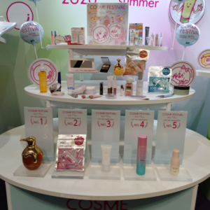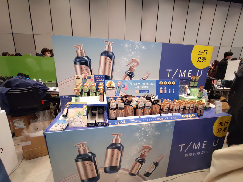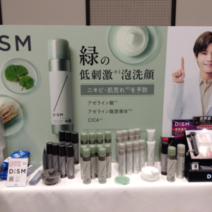 展示会では、上記ブランド以外にもマンダムが新ヘアケアライン「TIME U」、まつげ美容液ブランド「KUKUILASH」、中野製薬がヘアスタイリングブランド「TANTO」から“ノーセット風スタイル”をサポートする新アイテム「ヒートフィックスミスト」「ソフトシェイプスプレー」、アンファーがDISMブランドから繰り返す肌悩みにアプローチする緑泡の洗顔料「ディズム クリーミーフォームウォッシュ グリーン」、AbemaTVが展開するBORDER FREE cosmeticsのスキンケア発想のUV下地「クリアグロウリンクルUV」、ペリカン石鹸の「おっぱい想いの美白ボディローション」など、各社が商品を積極的にアピールした。