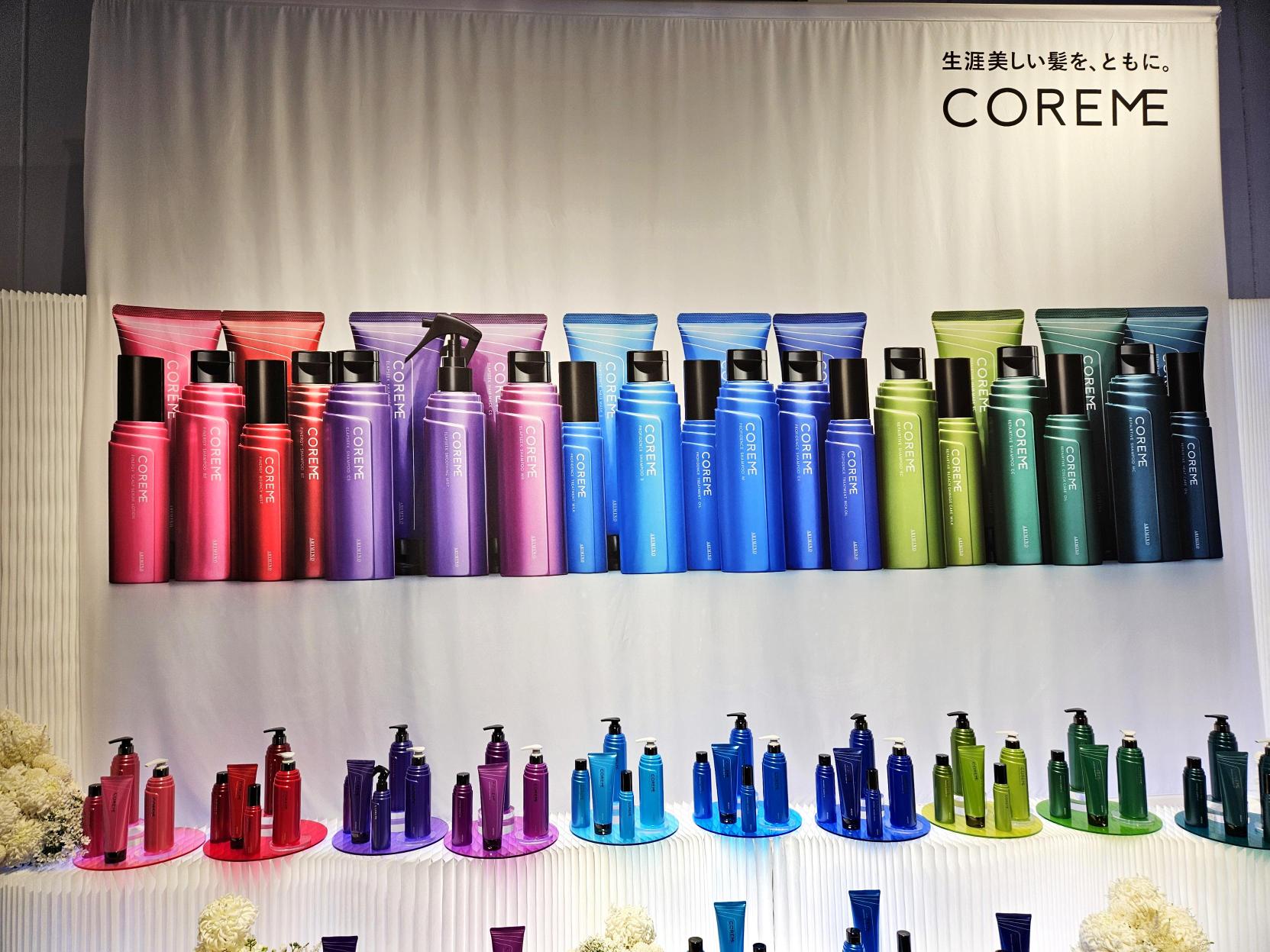 発売に先立ち開催された「新製品『コアミー リニューアル』発表会では、共通成分についての説明や製品ラインアップを紹介。ブランド担当者は「年齢を重ねてもヘアデザインを自由に楽しめる髪を支えていきたい。美容師とともに、大人世代の髪の可能性を広げるブランドとして進化させていく」と力強く語った。