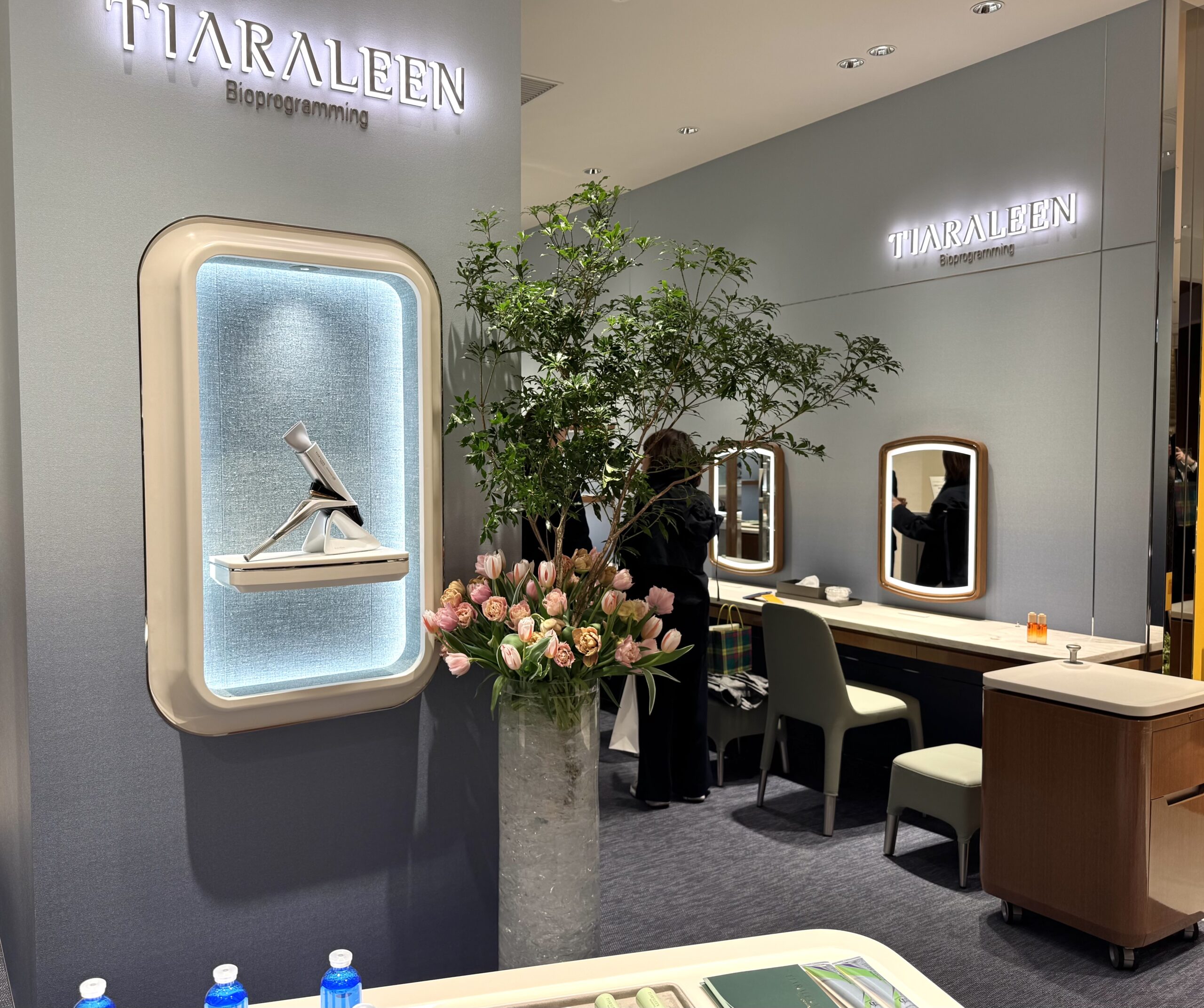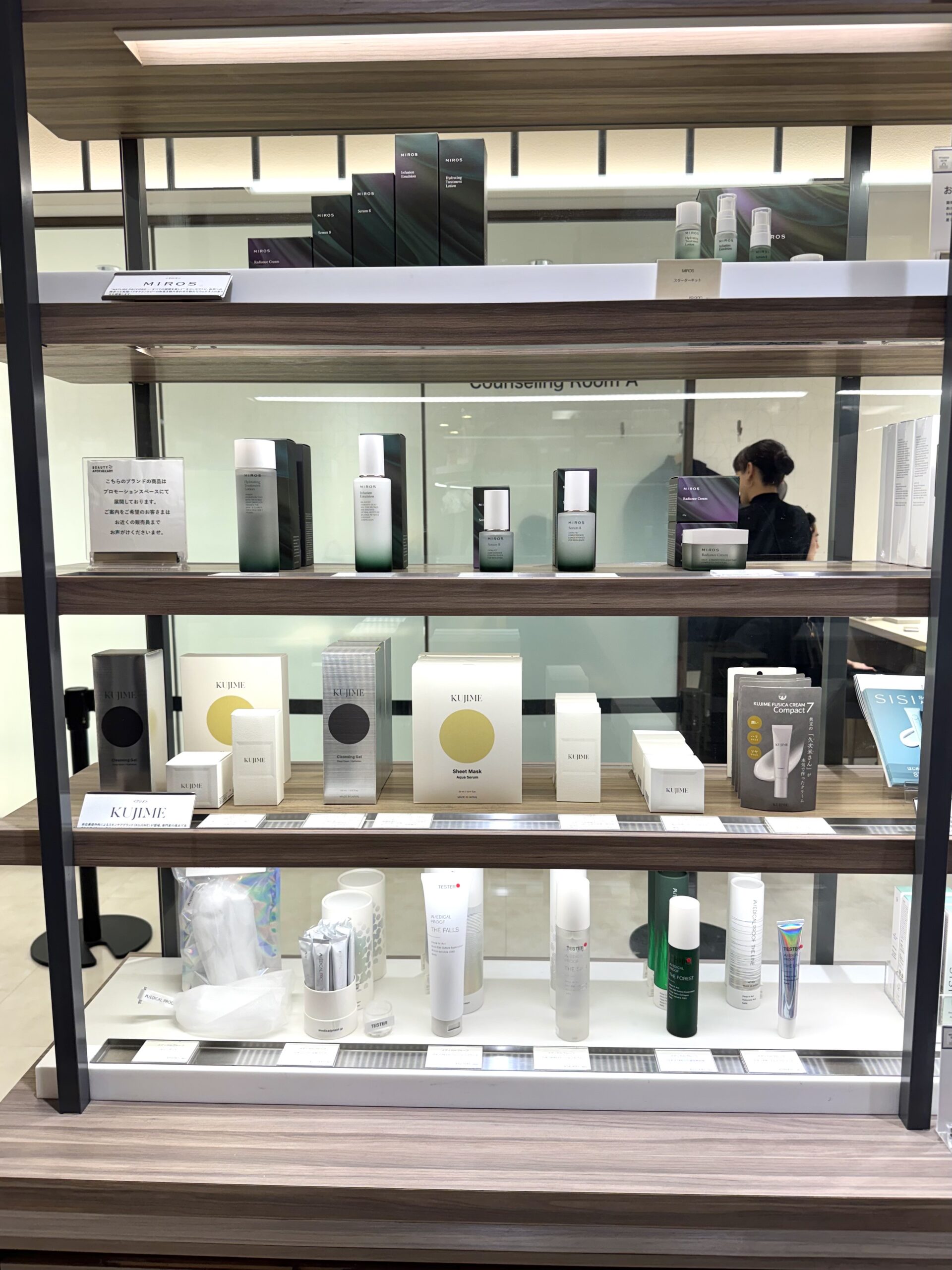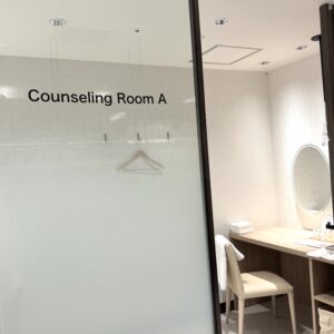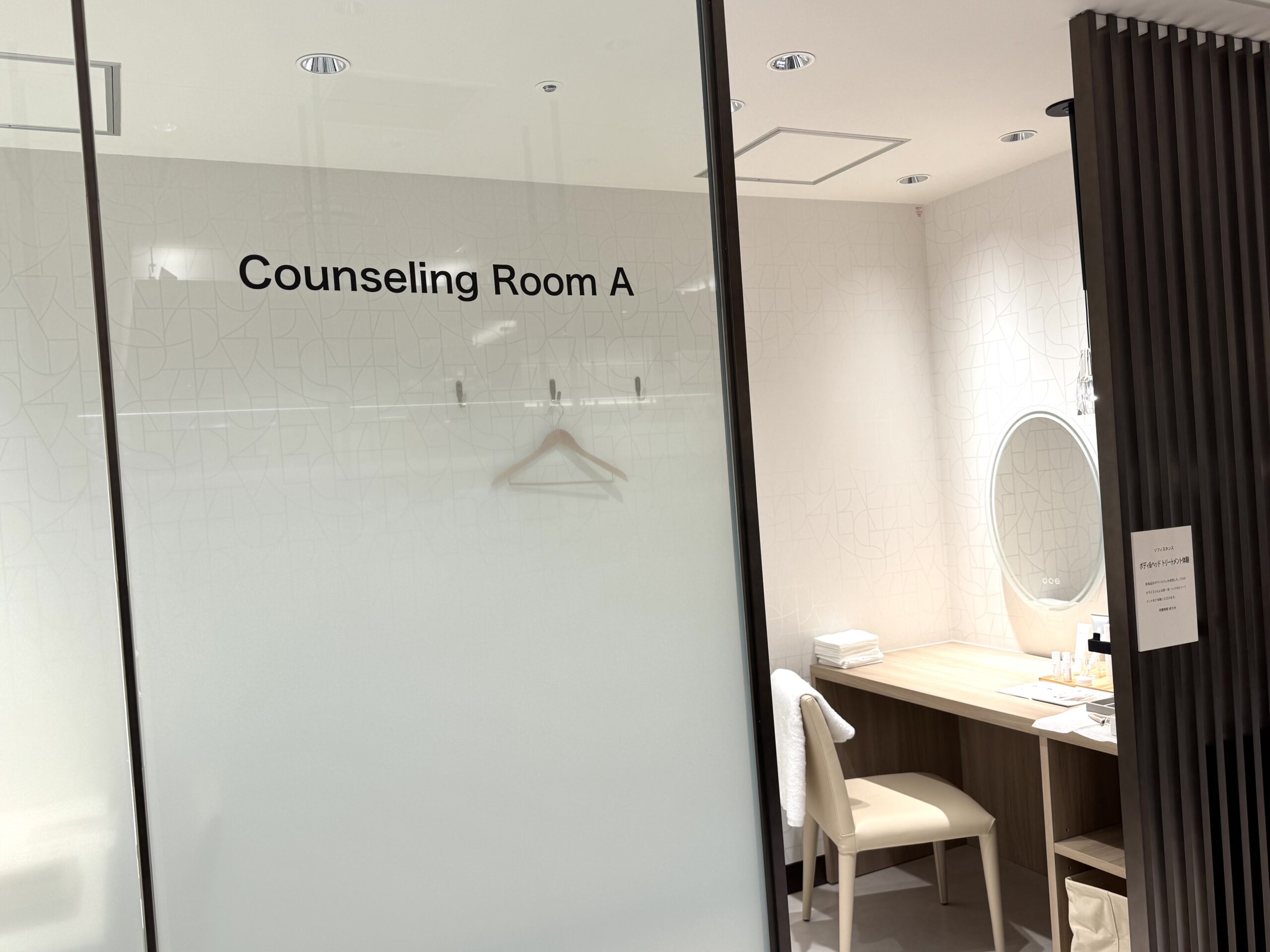 同時に、体験価値の強化も図った。フロア内には半個室のカウンセリングスペースやトリートメントルーム(2室)を新設し、肌測定やディープカウンセリングに対応。コンシェルジュカウンターも設け、顧客一人一人の状態に応じた提案を行う体制を整えた。物販中心から、滞在・体験型の売り場へとシフトした。