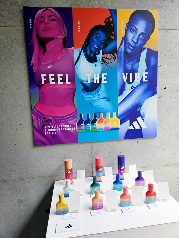 このほか、アディダスは〝ムードを高める香り〟というコンセプトのもと、気分やシーンに応じて選ぶフレグランス「Vibes(バイブス)」から新たに「Wonder Force」「Smooth Pace」を発売。同シリーズからは、新たに3月にヘア&ボディミスト3品も発売する。