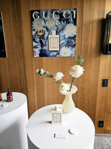 グッチ ビューティからはハイプレミアムの「ザ アルケミスト ガーデン」の新作「ムスキオ ミネラリス」「ムスキオ ディ ルーチェ」「ローザ スブリーメ」「ローザ インカンデシェンテ」の4種のオードパルファムを展示。また、6月に発売する「グッチ ブルーム アンブロシア ドォーロ」も会場にてお披露目。マスターパフューマーであるアルベルト・モリヤスが表現するホワイトブーケの香りを紹介した。