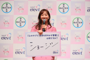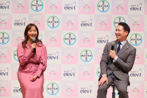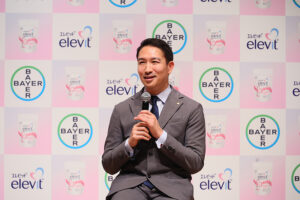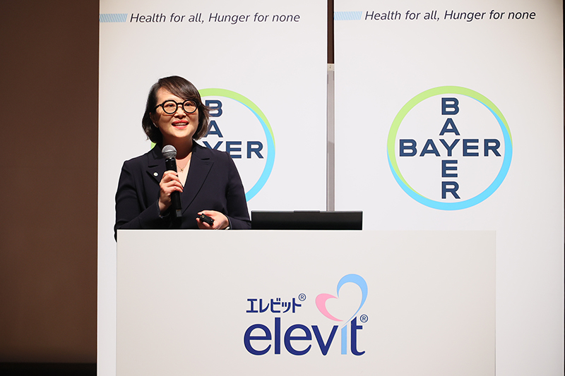 発表会ではバイエル薬品コンシューマーヘルスのミンシャ・セン日本代表が登壇し、日本の事業戦略と「エレビット」ブランドの概要を伝え、同社コンシューマーヘルス部門の掛水久美子氏が新商品の概要を説明した。
