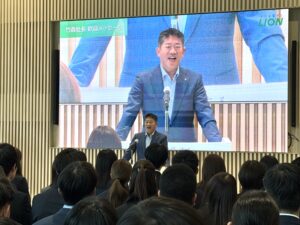 入社式で竹森征之代表取締役兼社長執行役員は、激変する社会環境に触れつつも「当社の本質は揺るがない」と強調。その中で、「商品を売る企業ではなく、生活習慣をつくる企業」であると改めて明言した。歯みがきや手洗いといった日常行動を通じて、人々の生活の質を底上げすることが、パーパスである「より良い習慣づくりで、人々の毎日に貢献する」を実現し、競争優位の源泉であると語った。
