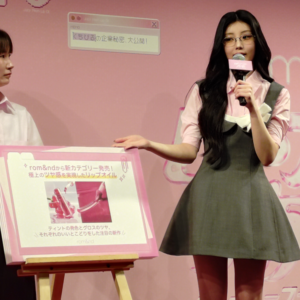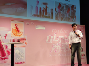 「今年はロムアンド創設10周年。消費者とのコミュニケーションを重視し、その声を反映したブランドづくりを進めてきました。その結果、韓国だけではなく、日本でも多くの消費者に愛されるブランドになっています。明日から3日間開催されるポップアップイベントをぜひお楽しみください」