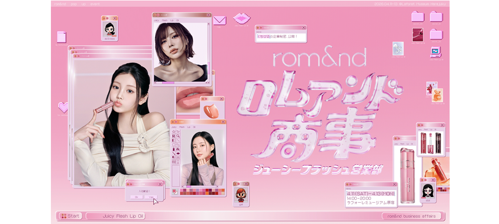 韓国コスメブランド「rom&nd(ロムアンド)」は2026年に創業10周年を迎える。これを記念するとともに、新商品「ジューシーフラッシュリップオイル」の発売に合わせて東京・原宿のラフォーレミュージアムにおいてポップアップイベント〝「くちびるの企業秘密、大公開。」ロムアンド商事〜ジューシーフラッシュ営業部〜〟を4月11~13日に実施した。