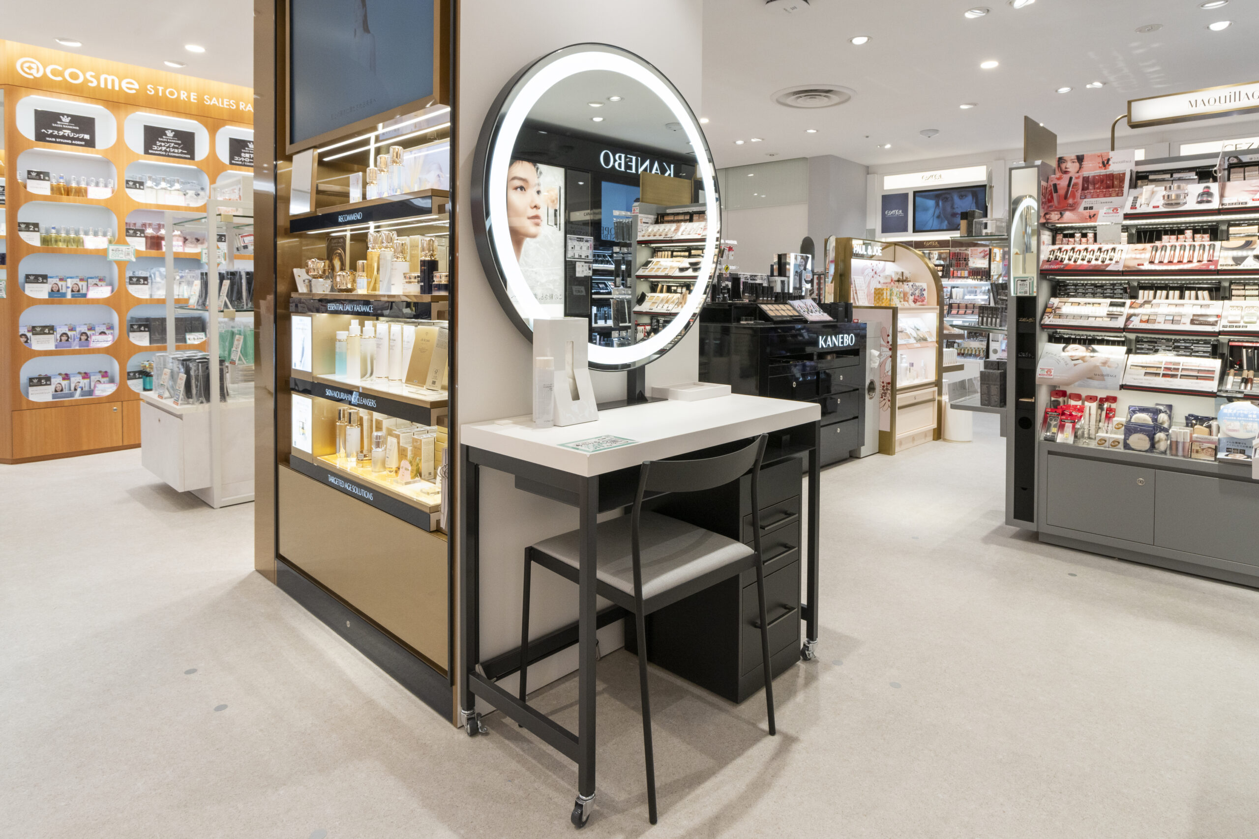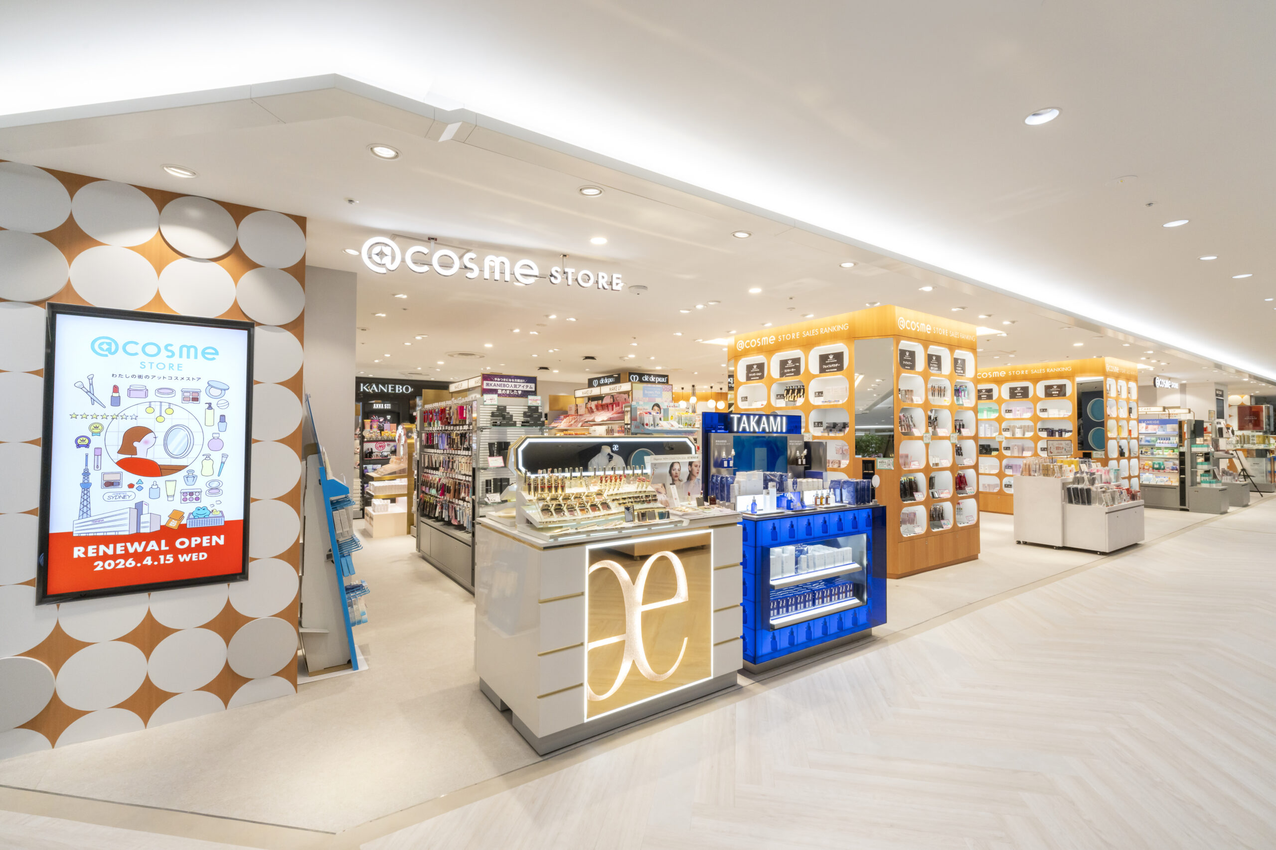 アイスタイルリテールは、2023年7月にアイスタイルグループに加わった化粧品専門店「シドニー テルミナ錦糸町店」を@cosme STORE錦糸町テルミナ店に改め、移転、増床。元の約30坪から3倍の約90坪に広げ、約360ブランド、約7000SKUへと大幅に拡大した。