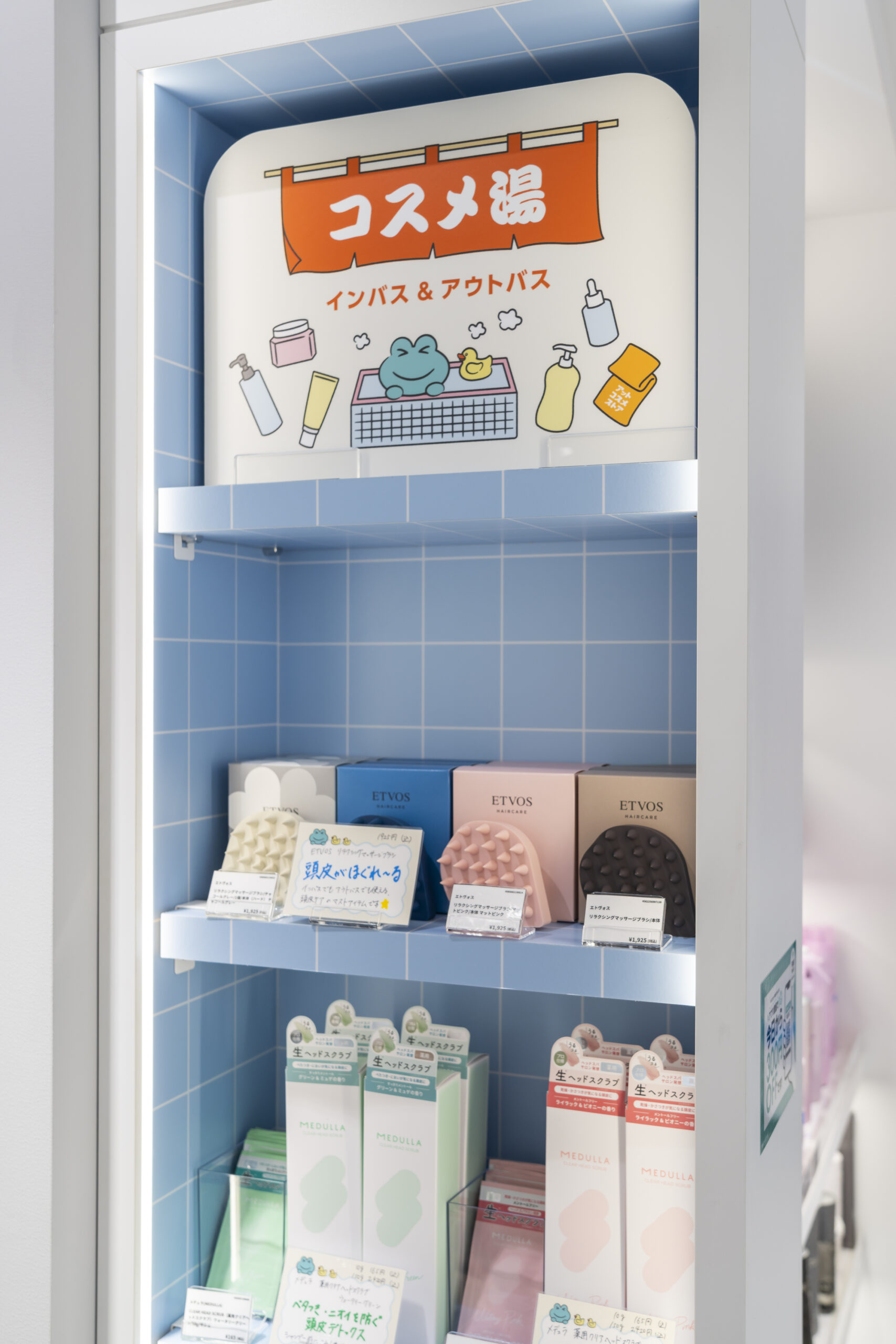 店内は最新の「@cosmeベストコスメアワード」受賞商品が並ぶ「ベスコスランキング」や、プチプラから百貨店ブランド、韓国コスメまで今のトレンドが一目で分かる「メイクランキング」など、他店舗で支持を得ている人気コーナーも充実。さらに錦糸町エリアでは銭湯文化が盛んであることから、入浴剤・ミニサイズ商品を取り扱う「コスメ湯売場」を構築。地域に根差したシドニーの資産を生かし、錦糸町テルミナ店にしかない魅力を発信する。既存と新規のニーズを余すことなくキャッチし、近年顕著な人口増加が進むエリアである錦糸町で、客数3倍以上を目指す。