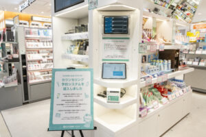 開店初日は、オープンから1時間もしない間に店内はお客でいっぱいになり、レジは長蛇の列。商品カゴに大量に化粧品を入れているお客も多く、ガラポン当選のベルの音が何度も鳴った。