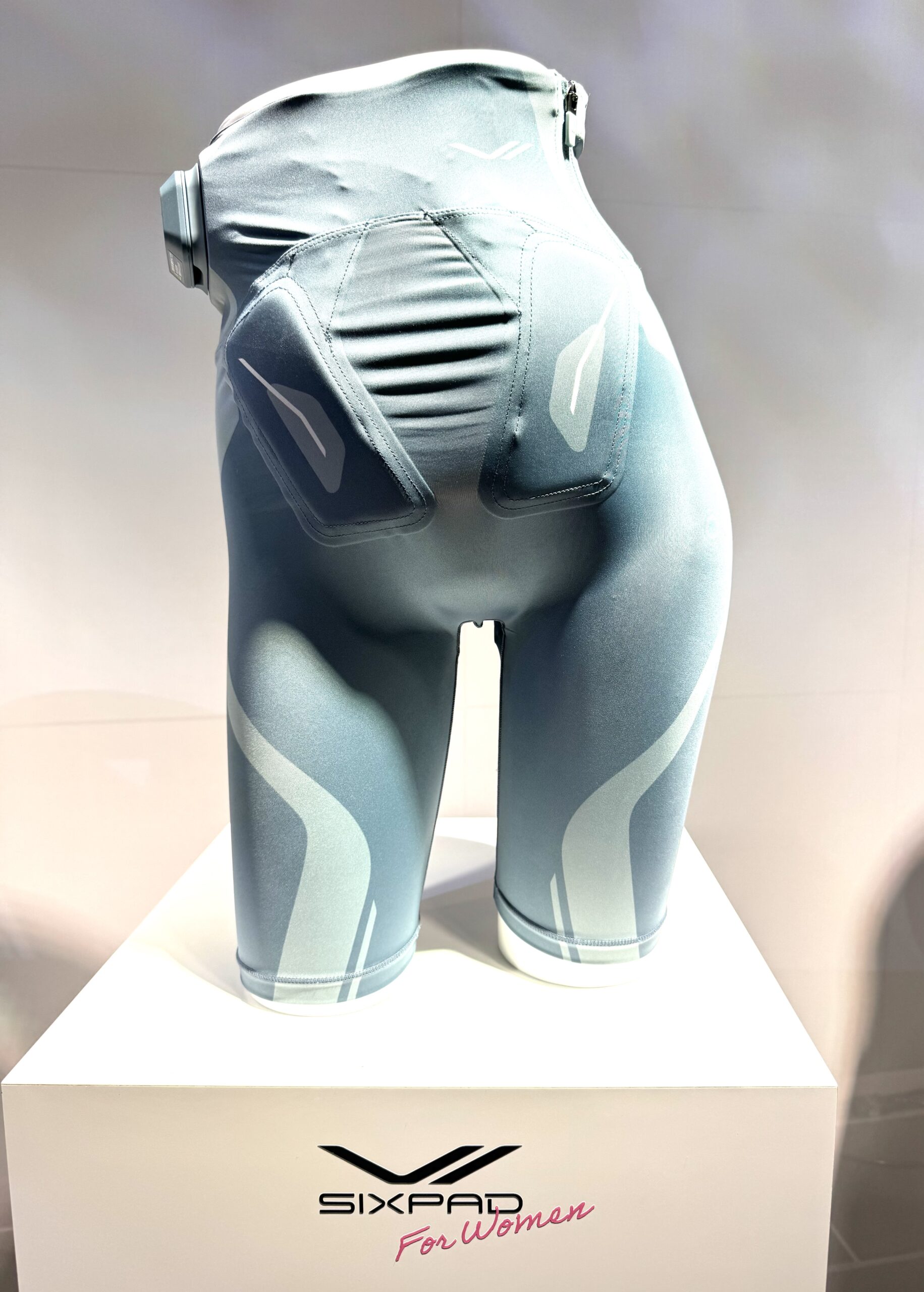 コアヒップはEMSで腹部とヒップの筋肉に同時にアプローチする。石谷本部長は「ぽっこりお腹とヒップラインという女性の二大ニーズに応える」とし、見た目の変化に加えインナーマッスルへのアプローチを重視する。電極は腹部と臀部(でんぶ)を広範囲に覆う縦長形状を採用し、既存品より厚みを持たせることで刺激の到達性を高めた。さらに骨盤底筋付近には伸縮しにくい生地を用い、装着時のズレを抑えながら狙った部位への効率的な刺激を図る。