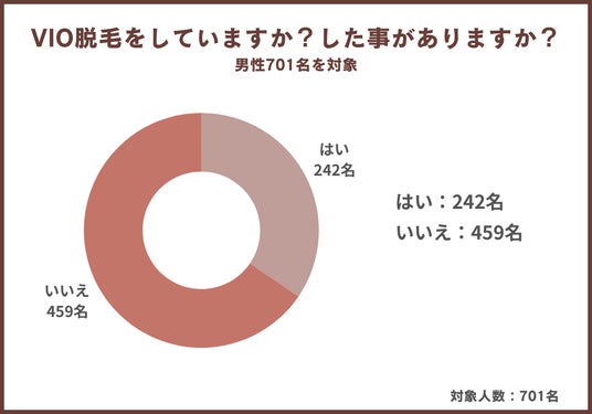 2024年の男性VIO事情を調査した結果、701名中242名(約35%)もの男性がVIO脱毛を行なっていることが明らかとなった。