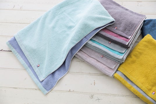 短辺サイズを半分にしたコンパクトなバスタオルで収納スペースや洗濯量も半分になります。