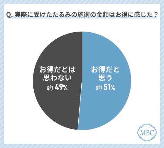 「実際に受けた肌のたるみの施術メニューの金額に関して、お得に感じましたか?」とアンケート調査した結果、