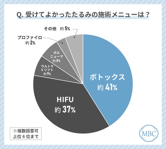 「受けてよかったと思った肌のたるみの施術メニューをお答えください。(選択式複数回答可)」とアンケート調査した結果、