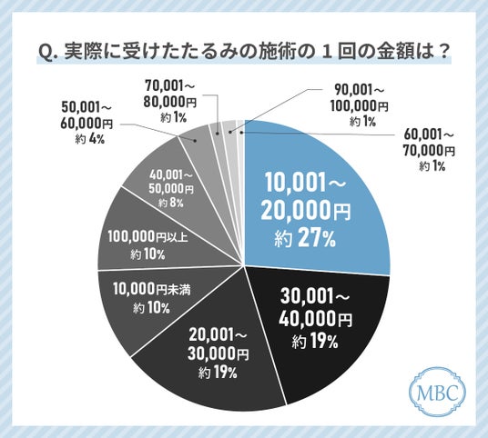 「実際に受けた肌のたるみの施術メニューの金額をお教えください。」とアンケート調査した結果、