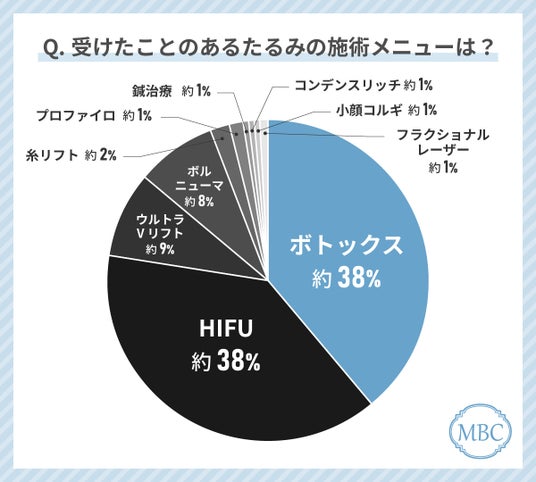 「受けたことのある肌のたるみの施術メニューをお答えください。(選択式複数回答可)」とアンケート調査した結果、