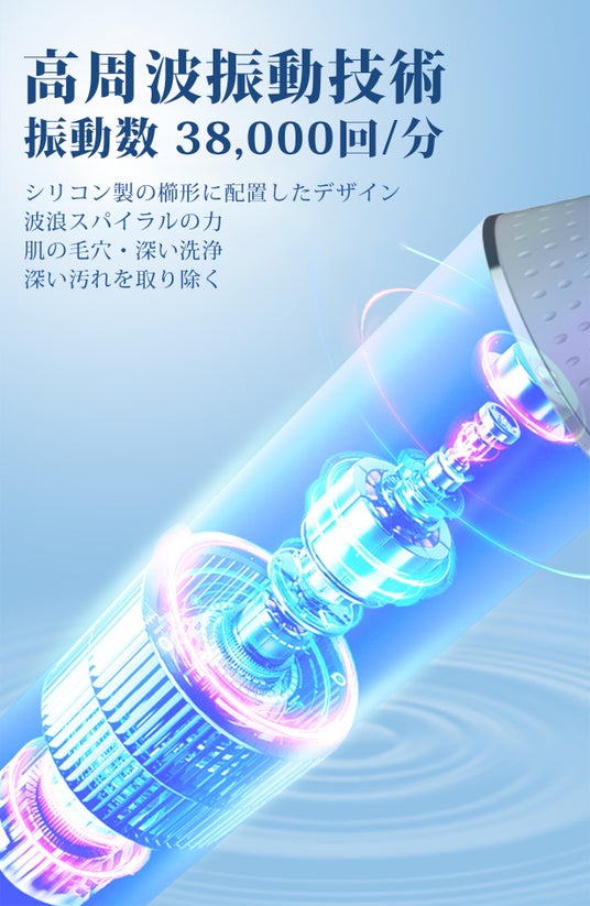 迅田国際株式会社高周波振動、波浪スパイラル、背中まで洗浄、一日の汚れをスッキリ!肌にやさしいシリコン素材、全肌質対応可能!角質洗浄、肌が滑らかになる五つのモードで様々なシーンに対応、2000mAhバッテリー容量