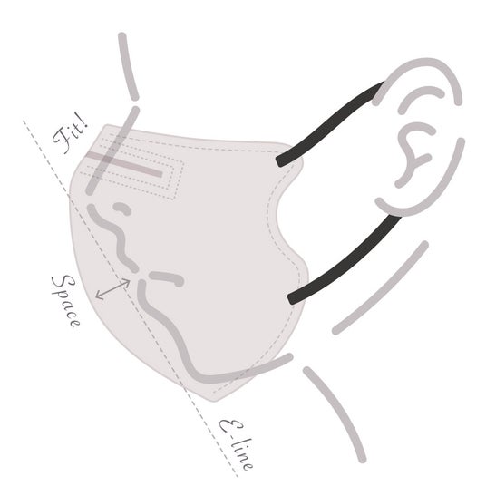 男女問わずつけやすいカラーとなっており、絶妙な発色がオシャレなグレージュに洗練された印象を与えるブラックの耳ゴムを採用したマスクです。