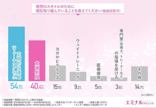 理想のスタイルのために取り組んでいることは「運動」「食事制限」