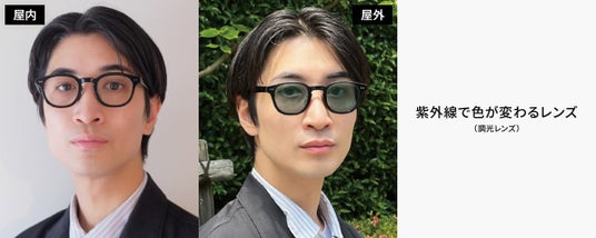 調光レンズは紫外線の量に応じて色調が変化し、まぶしさを軽減。屋外ではサングラス、屋内ではメガネとして使用でき、旅行やアウトドアなど、メガネとサングラスのかけ替えが必要なシーンで活躍します。Zoffの調光レンズ「オリジナルグリーン」と「オリジナルブルー」は、420nm(ナノメートル)までの有害光をカットする高機能UV420レンズで紫外線を100%カットします。まぶしさ対策だけでなく、紫外線対策にも最適です。また、Zoffでは度付きの調光レンズを店舗で常備しているため、店舗在庫範囲内の度数であれば、店頭のフレームと組み合わせたオリジナルの度付き調光サングラスを即日受け取ることができます。さらに、度なしにも対応しており、度なしの調光サングラスも即日仕上げが可能です。※店舗の在庫状況によります。店頭でご確認ください。Zoffでは、カラーレンズの売上が前年比160%、特に調光レンズは前年比260%と、国内の紫外線対策への意識の高まりにともない伸長しています。