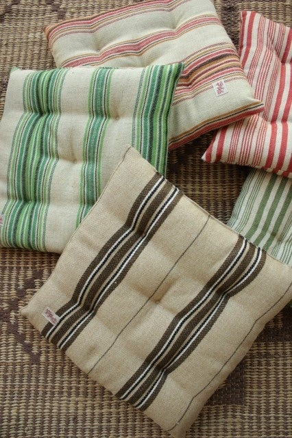 ヴィンテージのデッドストックファブリックを使用したシートクッションをプレゼントいたします。お持ちのチェアやスツール、ベンチにお使いください。