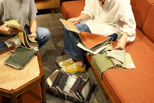 店頭でスタッフと一緒にお好みの生地をお選びいただきます。